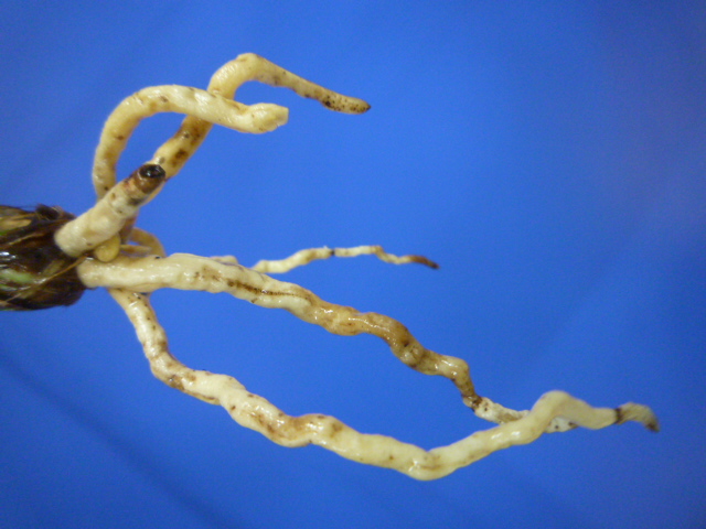 2本立の中木です。新木に綺麗な根をしっかり下ろしています。ここからでも作ることができる豊雪は寒蘭トップクラスに作りやすい品種です。