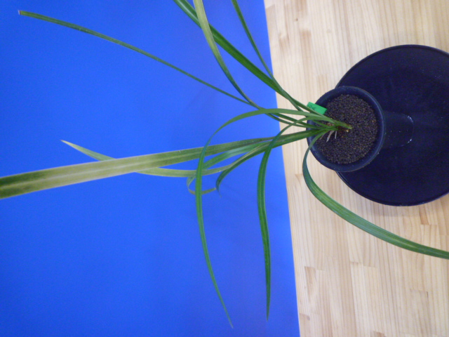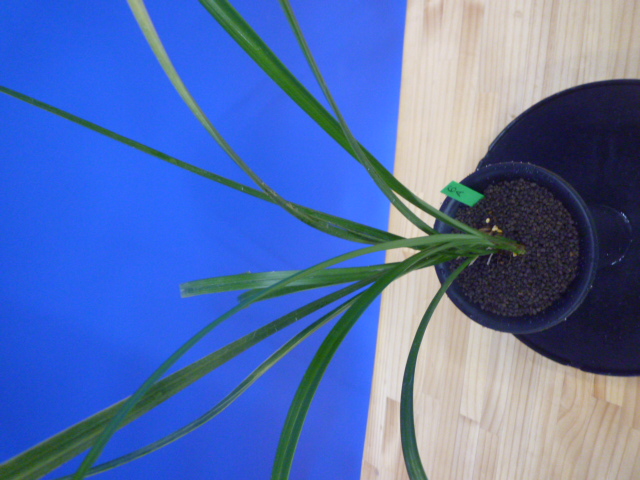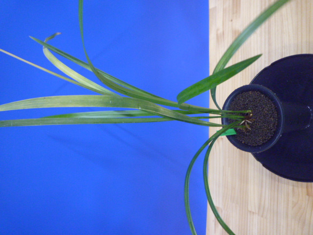 水月は、高知県産の大輪一文字咲きの素心です。昭和55年に土佐愛蘭会に登録されています。花軸の伸びが良く、花間も良好です。