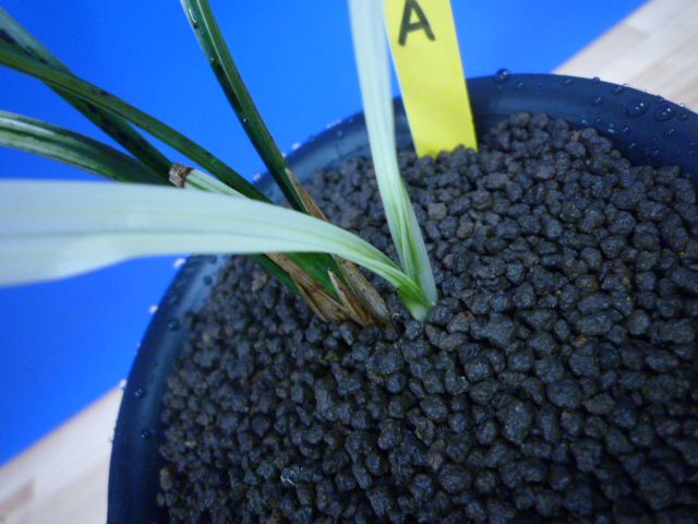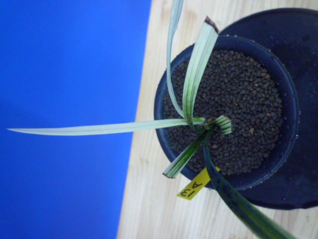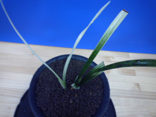 派手な月照晃の芽出し品です。根も綺麗に伸びていますので、これからの柄の変化を楽しみながら、じっくり作っていきましょう!!将来有望な品種ですので、お勧めいたします!