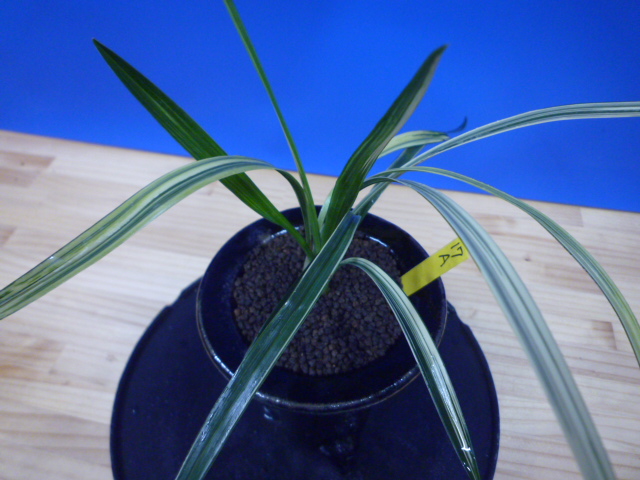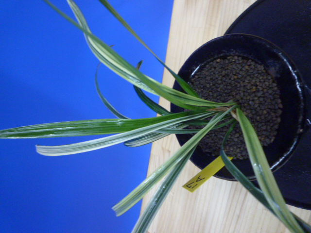 写楽は、白中斑縞の柄物です。大変見応えがあります。柄にも安定感がありそうですので、じっくり楽しめます。平成12年全国柄物連合会に登録された数の少ない品種です。