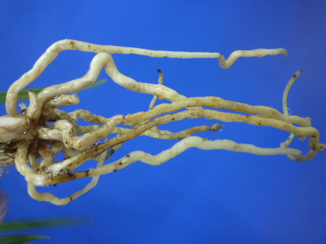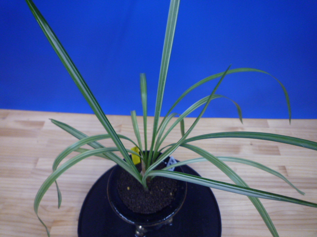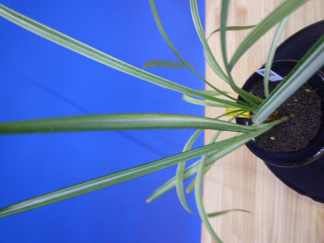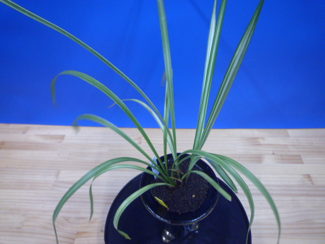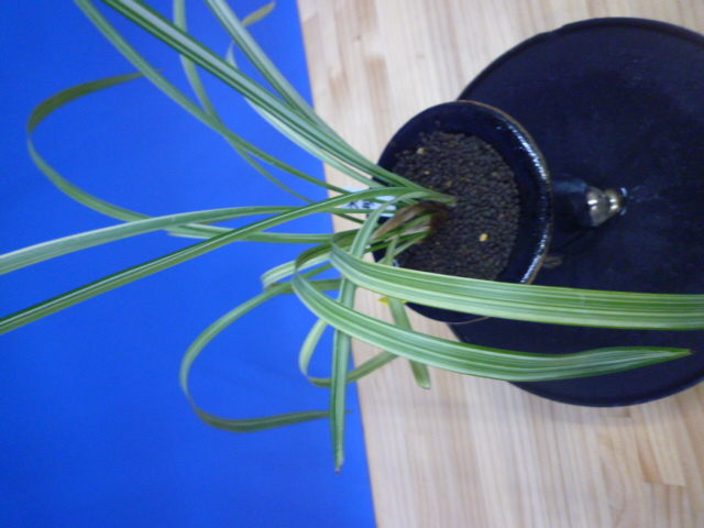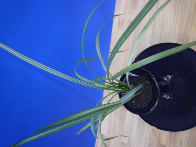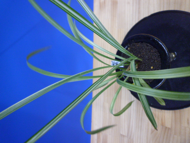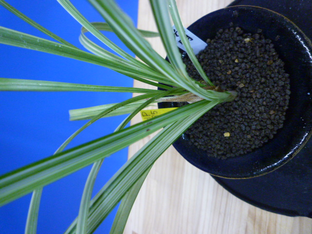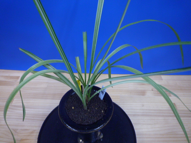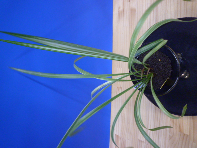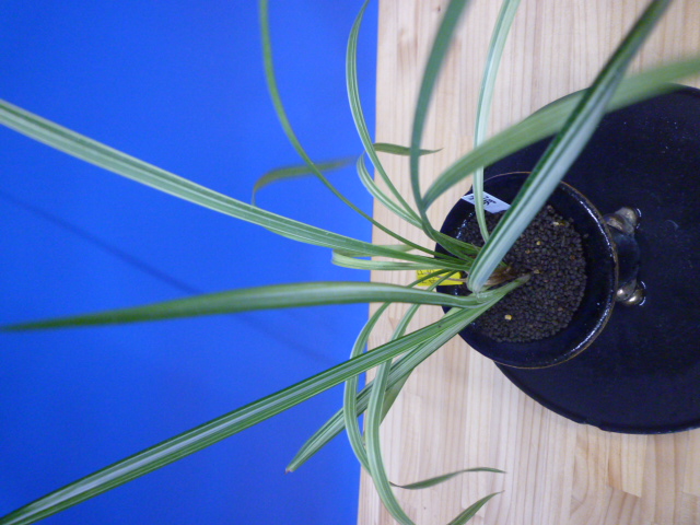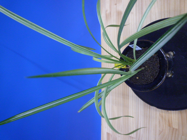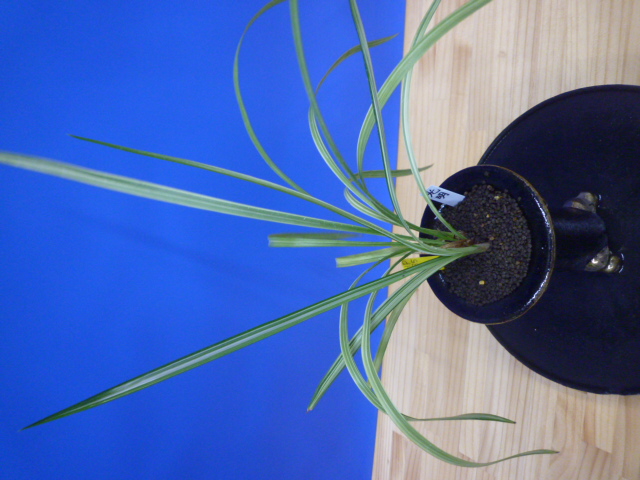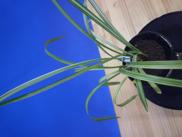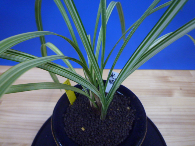 光明は、宮崎県産の中押し白縞で、これほど白い柄はありません。花も柄の様な綺麗な縞花を咲かせます。花茎の伸び・花間ともに良好です。展示会でもよく金賞をとる人気と実力があり、柄物の中でも作り易い木ですので、お勧めです。