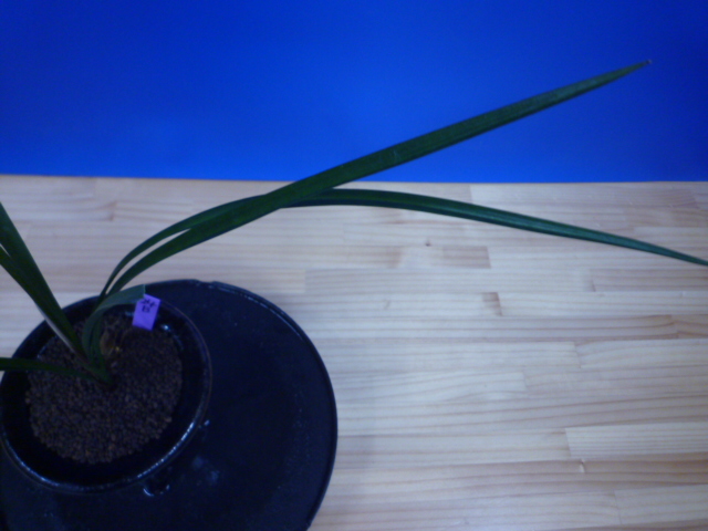 濃緑葉が艶消しで硬く葉ぶりが良く、見どころがあります。そんな葉の中から花軸がすっと伸び上がり、花全体が葉上にしっかり抜け上がります。超大輪花ですが、花数も程よく、子房が長く花間も十分で、花配りをしっかりして空間美を保つことができます。