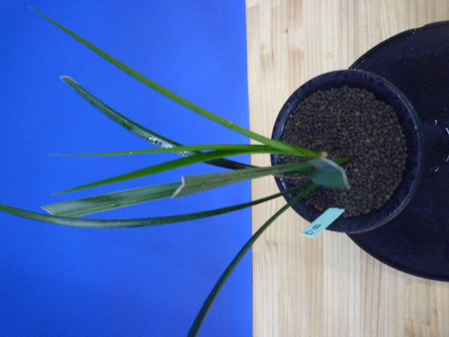 天神は、高知県払越産の発色の良い黒紅の大輪花で、舌も大きなベタ風です。葉丈は、あまり大きくならず、花全体が葉上にしっかりと抜けあがり、花間もよく、大きな迫力のある花を咲かせます。花弁が厚く花持ちも良い、払越産らしい大変優秀な特上花です。一度は咲かせてみたい払越の最高峰です。