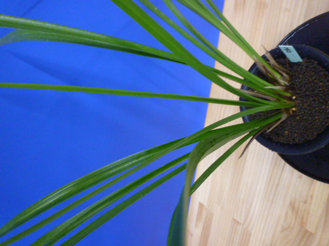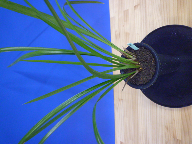夢は、高知県産の青大輪花の赤ベタ舌で、土佐愛蘭会の70周年記念大会で総合優勝した大変人気・実力のある花です。型の良い花で花間が良く、花弁もしっかりとした花です。しっかりした花ですので、型崩れが少なく花持ちも良好です。白舌の赤ベタがきれいで、素晴らしい花です。花軸が完全に抜け上がった時の夢は、非の打ちどころがありません。