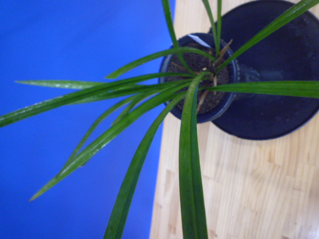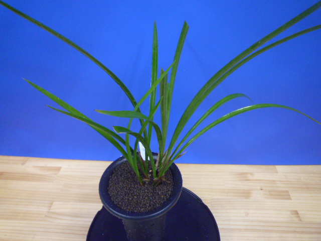 払越の濃紅大輪大舌ベタ風の特上花です。大きな濃紅花で花間が特によく、開花時には3輪でしたが均等の花間が一番上まで取れ、大変良い空間美がありました。大きな花ですが十分な花間がありますので、決して花と花が重なって混雑することなくゆっくり花を楽しめます。締まった葉肉のある硬い葉から、花軸が伸び上がり花が葉上に抜け上がり、花間良く大輪の特上花が咲く姿は圧巻です。