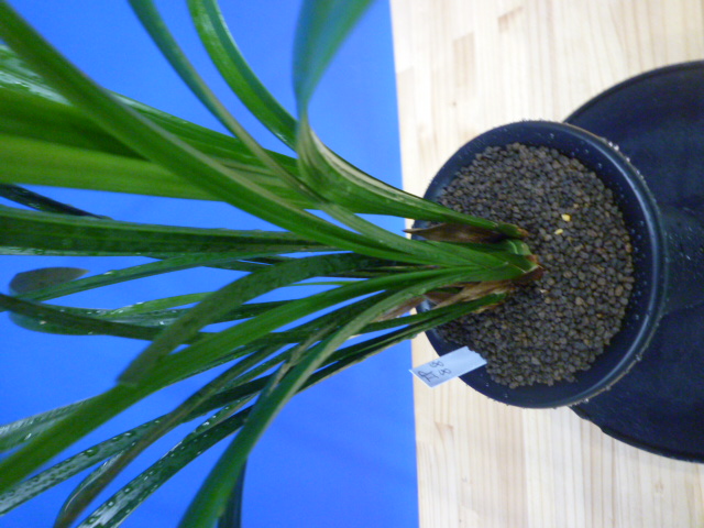 華神は、高知県産の紅花です。濃紅で舌が大きく迫力のある名花です。昭和52年に日向寒蘭連合会において登録された品種ですが、現在の展示会でも活躍する銘品です。つぼみが小さいときは青更紗で膨らんで大きくなるうちに紅色がしっかり乗ってきて開花時には濃紅に仕上がります。よりきれいな濃紅にするには、つぼみのうちにしっかり採光していくことです。