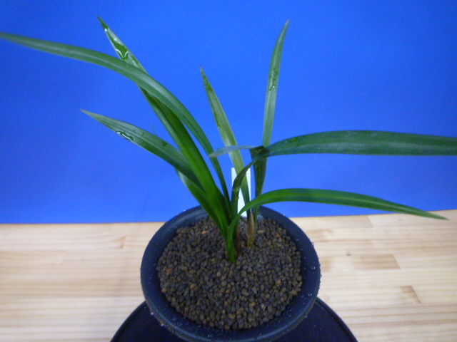 チャボ性の締まった葉で、通常の成木よりも小さい35㎝以上で成木になりますので、小花ですが、花も抜け上がり全体的に小さくまとまりがあり、非常に色が綺麗でこれからの理想的な寒蘭像をしています。小花ですが大変色が綺麗で全体的なバランスが良く、これまでにない世界観がある花ですので、ぜひ堪能してください!!