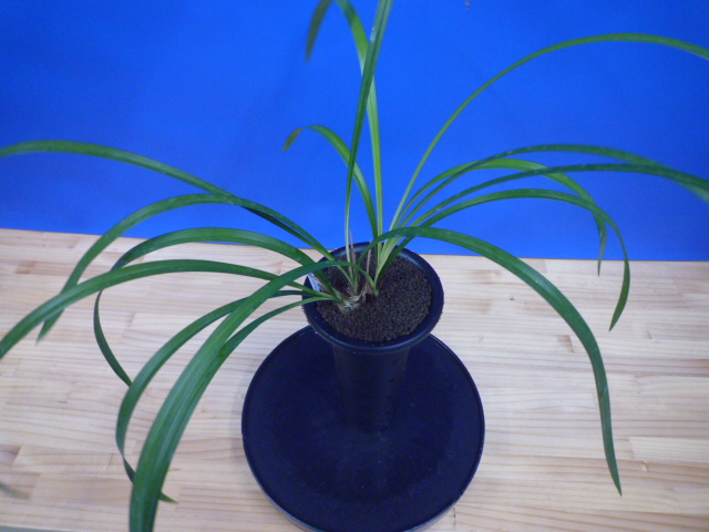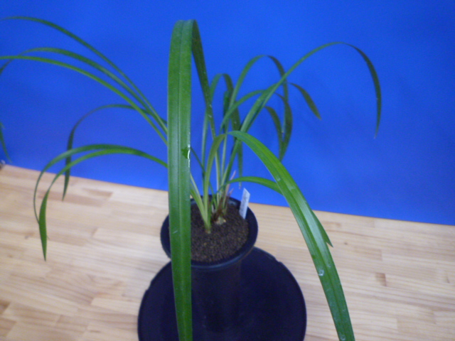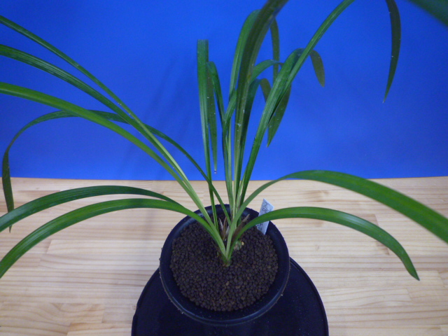 荒城の月は、高知県産の紺覆輪で花も黄色紺覆輪の大きなベタ舌系です。花軸の伸びが良く、花間をとるバランスの良い花です。展示会でも良く金賞を獲る品種で、葉芸品ながら作り易さも魅力です。新芽は紺覆輪で上がり、後にも残りますので花がない時期でも楽しめます。