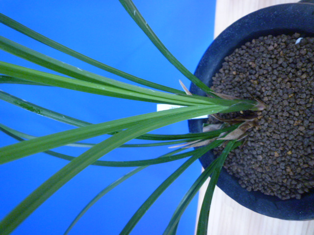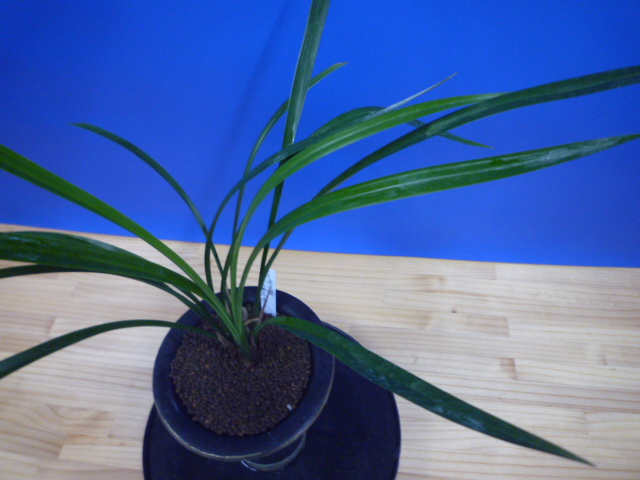 花弁が広くがっしりした青大輪花で、舌が大きな無点系です。迫力ある大輪花は型崩れすることなく見事で、開花すると話題の一鉢になる一品です。大輪花ですがしっかりとした花間で、全体のバランスが良く一輪一輪がきれいに見え、大きな無点系の舌も程よい巻きで見応えがあります。まだまだ数の少ない品種ですが、展示会で優勝歴もある大変優れた名花です。