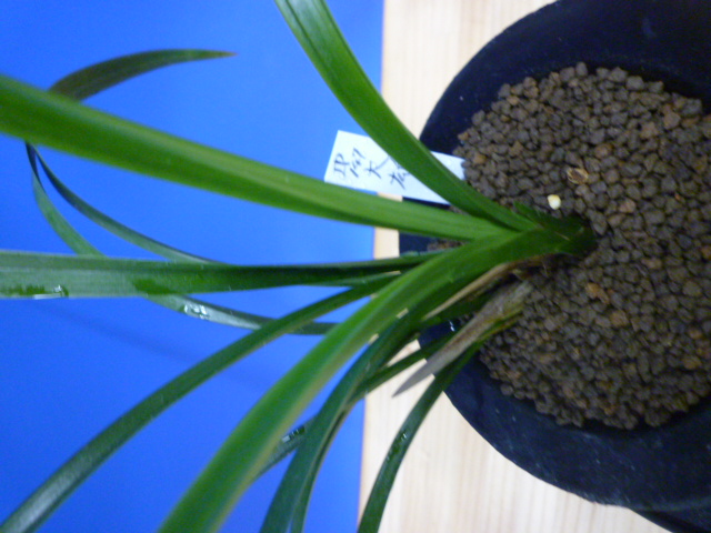 大雄は、鹿児島県産の白花素心です。花弁が厚く幅も広く、大きな舌が魅力的な白花の代名詞です。雄大な花で、見るものを魅了して現在でも多く方に愛されています。花を見ると、やっぱり大雄の花はいいと、納得できる名品です。花弁が厚い花は大変迫力があり、展示会でも良く金賞を獲る人気実力ともに充実した品種です。