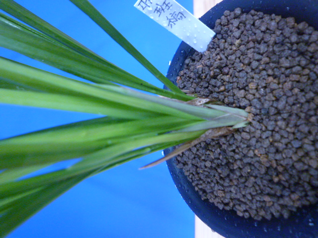 無名の斑縞です。派手に出来上がるタイプではないのかもしれませんが、新木には柄が少し出ています。作りやすい品種ですので、工夫して柄をきれいにしてあげてください。新芽に柄が綺麗に出てくれば、成長した後も柄がのこっていくかもしれません。