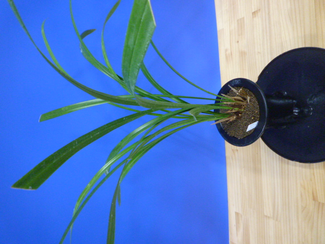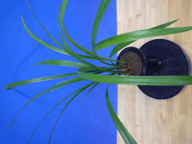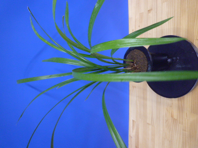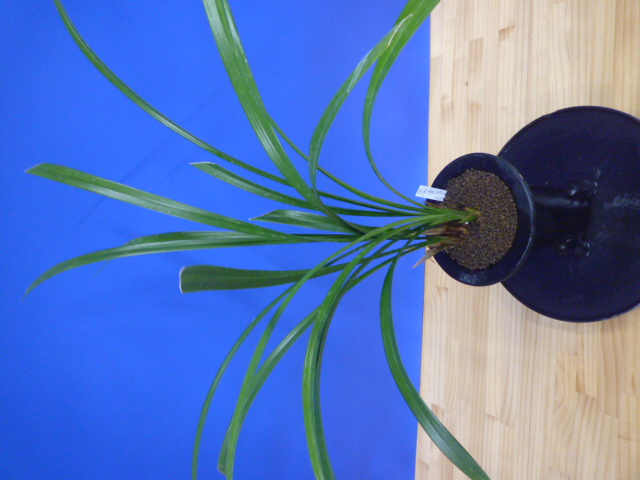 高知県産の青一文字大輪です。花間の良い一文字咲きの大輪でのキレもある花形で良い花です。腰高の中垂れ葉ですが、しっかりと花軸が伸びあがって、葉上に抜けていきます。そして、なんといっても大きな花でも十分な花間を持っています。じっくり見ていても飽きの来ない青一文字です。