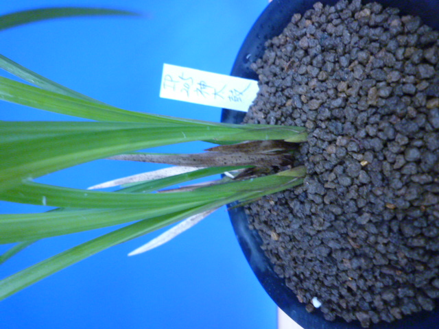 神太鼓は、宮崎県産の紅大舌です。三角咲きですが花形が良く花弁のしっかりした大変良い紅花の品種です。細葉で中垂れ葉で花軸の伸びが良く、花間・花数も良好で全体的なバランスが良い紅花です。平成28年に宮崎県蘭協会で登録された品種ですが、まだまだ数の少ない希少品です。