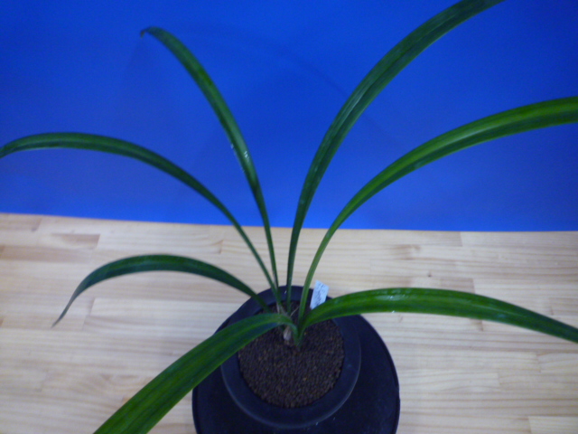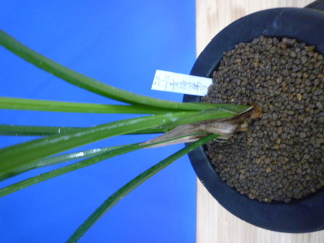 青海刀事は、徳島県産の青大輪で特に舌が大きな花で、圧倒的な存在感がある力強い花です。一度この花を見たら忘れることができないインパクトがあります。花弁の広さ、大きさ、舌の大きさ、張り、どれをとっても文句なく、花軸の伸び、花間、花数などの花の資質においても申し分なく、満足いく花を咲かせてくれます。本咲きしたこの花の横に並べる花はそうそうありません。