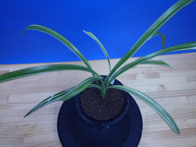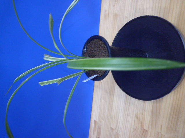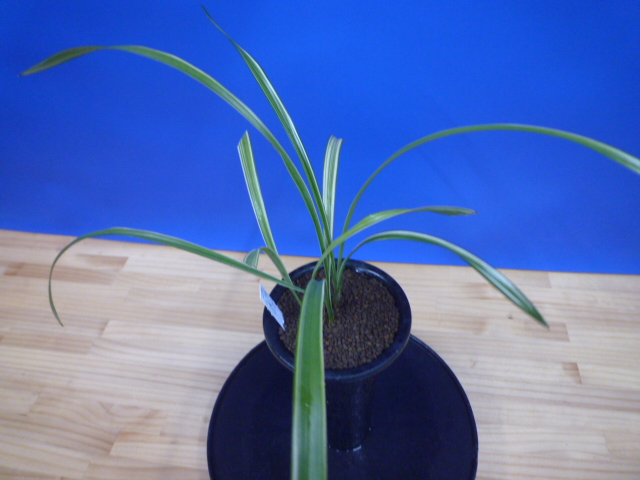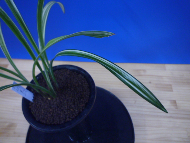 天山は、鹿児島県産で紺覆縞の柄物界の代表的な品種です。花は青に白縞をかけるすばらしい花です。展示会でもよく金賞をとる人気種で、作り易い木です。